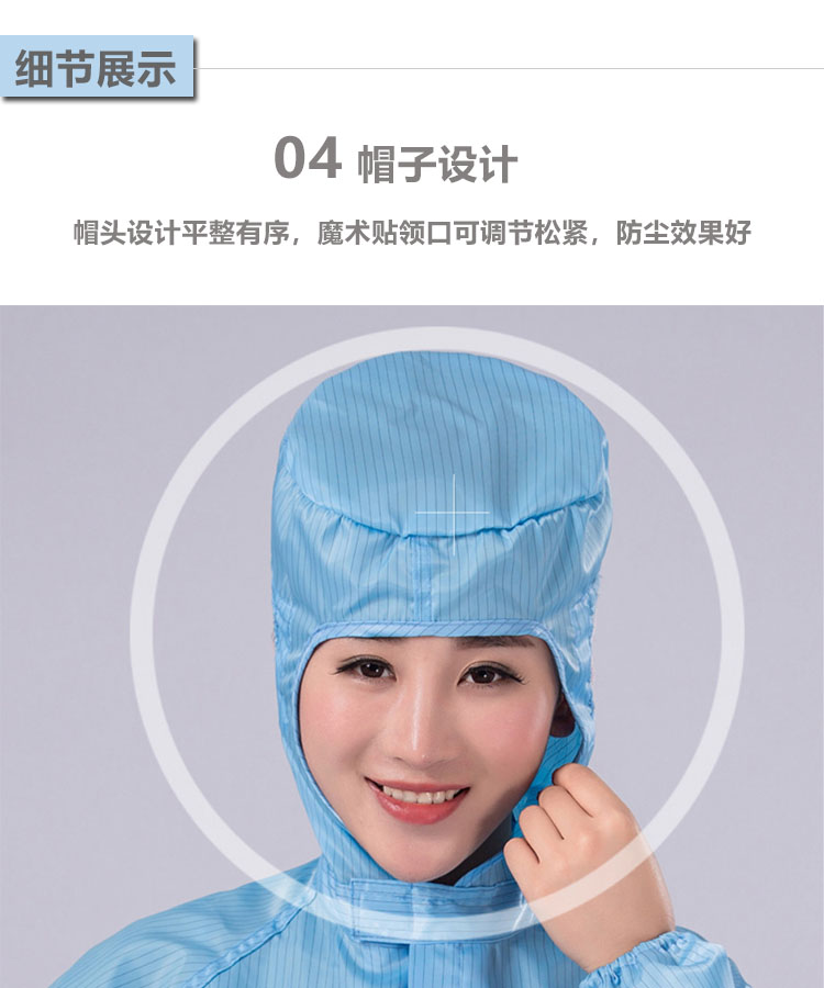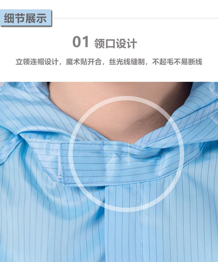 防靜電無塵連體服是由專業(yè)的防靜電面料制作,采用滌綸長絲與高性能導電纖維編織而成,具有高效、永久的防靜電、防塵性能,能有效釋放人體靜電荷,從而滿足高級別無塵環(huán)境的要求。廣泛應用于電子電器、食品、生物制藥、實驗室等無塵車間及產線。