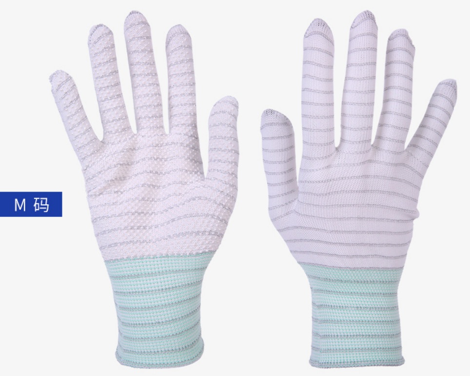 碳纖維條紋點(diǎn)塑手套又稱碳纖維點(diǎn)塑防滑防靜電手套,其制作方法是在針織尼龍手套的整個(gè)手指和手掌部位涂上一層PU點(diǎn)塑樹脂,這樣既增加了防滑性能,又增加了隔熱性能,同時(shí)能防止人體手掌的手汗和微粒污染,是精密電子生產(chǎn)線不可缺少的產(chǎn)品??捎糜诰ぶ圃鞓I(yè)、紡織業(yè)、電子行業(yè)、電力工程、汽車裝配、無塵車間等領(lǐng)域。