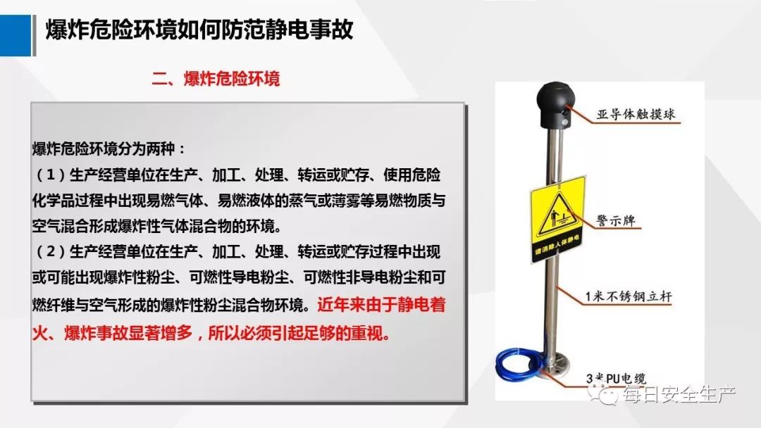 一方面,一些電阻率很高的高分子材料如塑料,橡膠等的制品的廣泛應用以及現(xiàn)代生產(chǎn)過程的高速化,1967年7月29日,美國Forrestal航空母艦上發(fā)生嚴重事故,一架A4飛機上的導彈突然點火,造成了7200萬美元的損失,并造成人員損傷134人,調(diào)查結果顯示導彈屏蔽接頭不合格,靜電引起了點火。1969年底,在不到一個月的時間內(nèi),荷蘭、挪威、英國三艘20萬噸超級油輪洗艙時產(chǎn)生的靜電引起相繼發(fā)生爆炸。