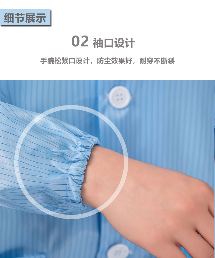 防靜電無塵大褂是由專業(yè)的防靜電面料制作,采用滌綸長(zhǎng)絲與高性能導(dǎo)電纖維編織而成,具有高效、永久的防靜電、防塵性能,能有效釋放人體靜電荷,從而滿足高級(jí)別無塵環(huán)境的要求。廣泛應(yīng)用于電子電器、儀器儀表、食品、生物制藥、實(shí)驗(yàn)室等無塵車間及產(chǎn)線。
