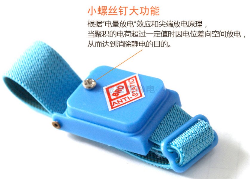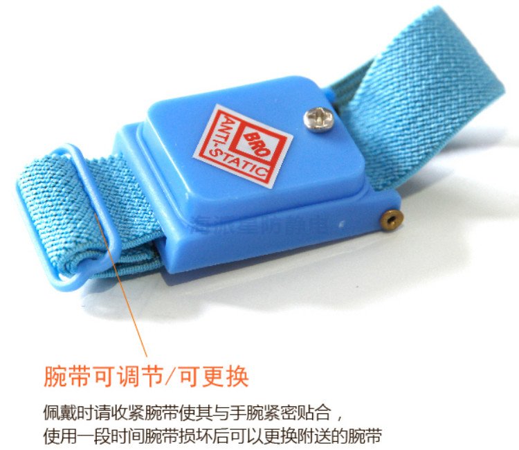 防靜電手腕帶,也叫防靜電手環(huán),是一種配戴于人體手腕上,泄放人體聚積靜電電荷的器件。它分為有線型、無線型,有金屬環(huán)和橡筋導(dǎo)電絲混編環(huán)。它由防靜電松緊帶、活動(dòng)按扣、彈簧軟線、保護(hù)電阻及夾頭組成,松緊帶的內(nèi)層用防靜電紗線編織,外層用普通紗線編織,可有效保護(hù)零阻件,免于受靜電之干擾,用以泄放人體的靜電。